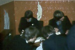 The venue for the return match was the common room in Number One South End. Seating consisted of a huge, rather moth-eaten three piece suite and a selection of other, unmatched chairs. Apart from tea and coffee, cider was also available. Compared to the sterile atmosphere of the High School common room, this was like some illicit drinking den. An even greater surprise was the food: Steve "Chippy" Neal went out to his father's fish shop and returned with a cardboard box full of steaming cod and chips.