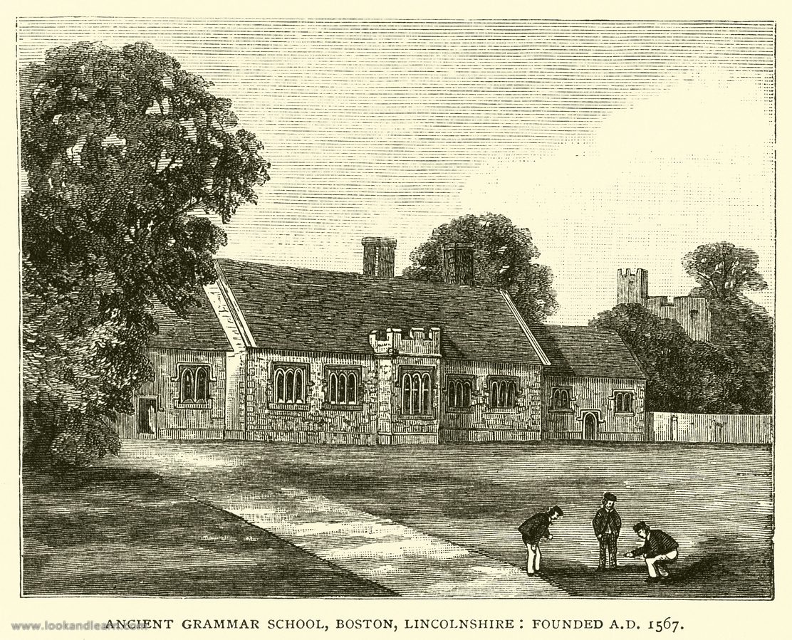 Drawing of Boston Grammar School from "Our Old Country Towns" by Alfred Rimmmer, 1881